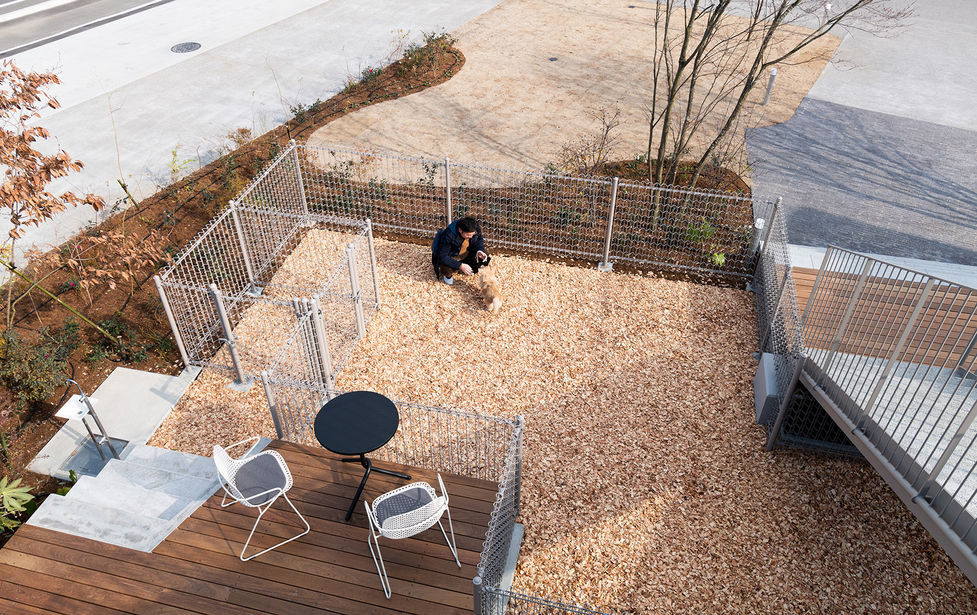 段々に積層した建物形状をいかした屋外テラスでは、階層ごとに過ごし方がことなるファニチャーや植栽に彩られています。